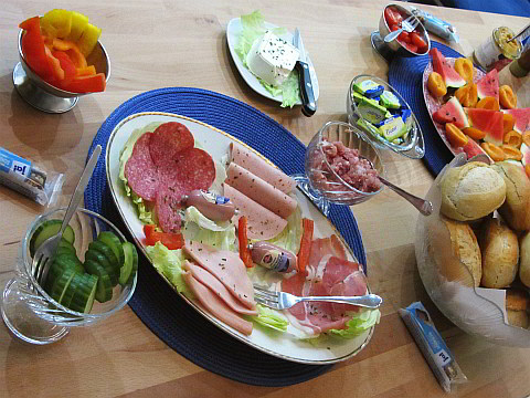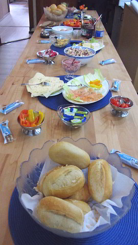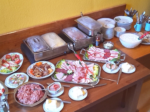 Das Buffet beim Frühstück am zweiten Samstag im Monat ist immer sehr abwechsungsreich und es wird immer wieder frisch nachgereicht. Die bestellten Getränke werden sogar durch weitere freundliche Helfer an den Tisch gebracht. Sandra und Georg und ihre Helfer organisieren das jeweils sehr nett.