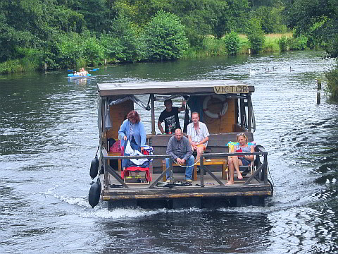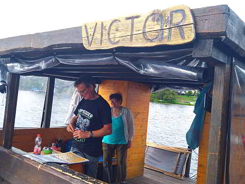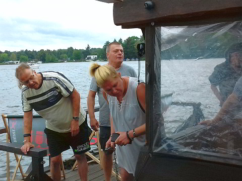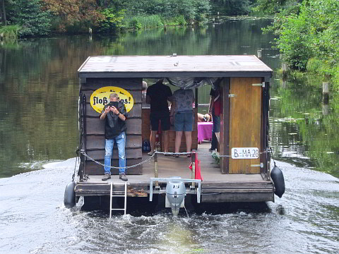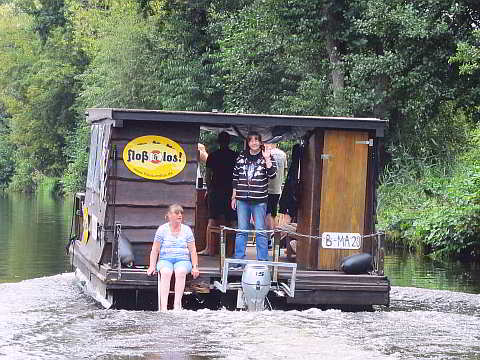 Nachdem unsere drei Steuermänner (Rudi, Achim und Hansgeorg) technisch und seefahrerisch von den Mitarbeitern von "Floß & Los!" eingewiesen wurden, konnten wir unseren Proviant und Getränke verteilen und an Bord gehen.