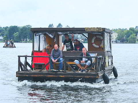 Die Besatzungen der Flöße ergaben sich relativ schnell. Jeder der 20 Teilnehmer suchte sich ein paar Leute zusammen und schon waren die Flöße mit den russischen Namen Viktor, Magdalena und Kevin besetzt.