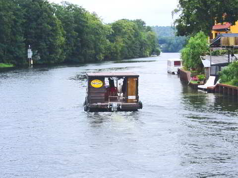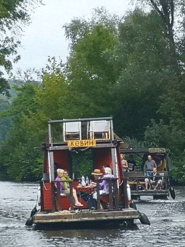 Victor: das zweite Kremser-Floß mit Sonnenterrasse und Liegenstühlen.