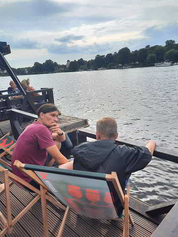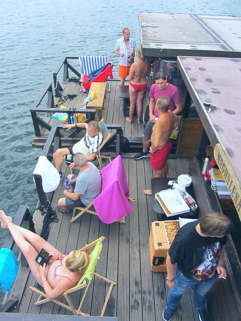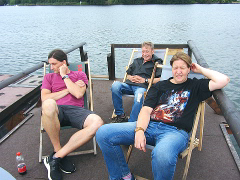 Einige Teilnehmer wechselten nochmal die Flöße, entweder um gute Gespräche zu führen, oder einfach die Ruhe und Aussicht im Liegestuhl zu geniessen.