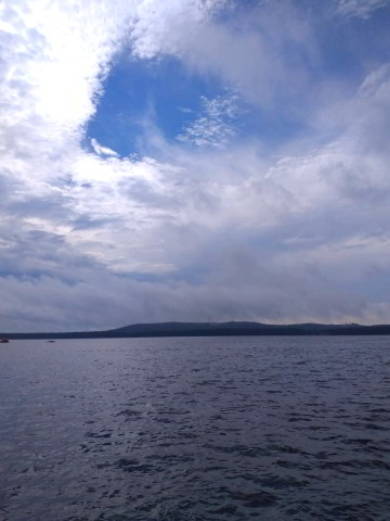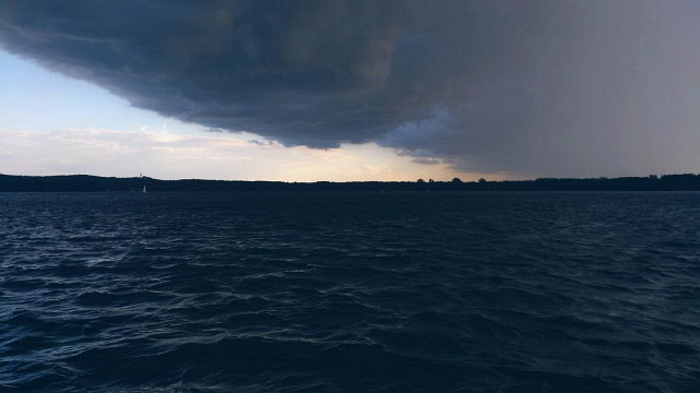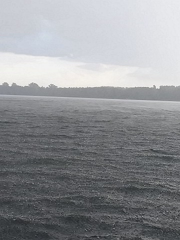 Als wir wieder auf dem großen Müggelsee ankamen, mussten wir ganz schön staunen, als wir sahen, wie eine riesige Regenfront über der Stadt hing.