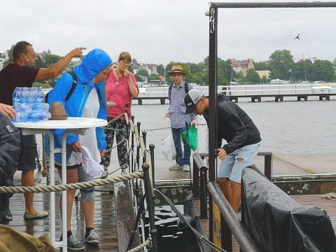 Das sorgte schon für einige Lacher und recht außergewöhnliche Ideen, wie wir denn nun mitten auf dem Wasser zu ca. fünf Liter Kaffee kommen könnten.