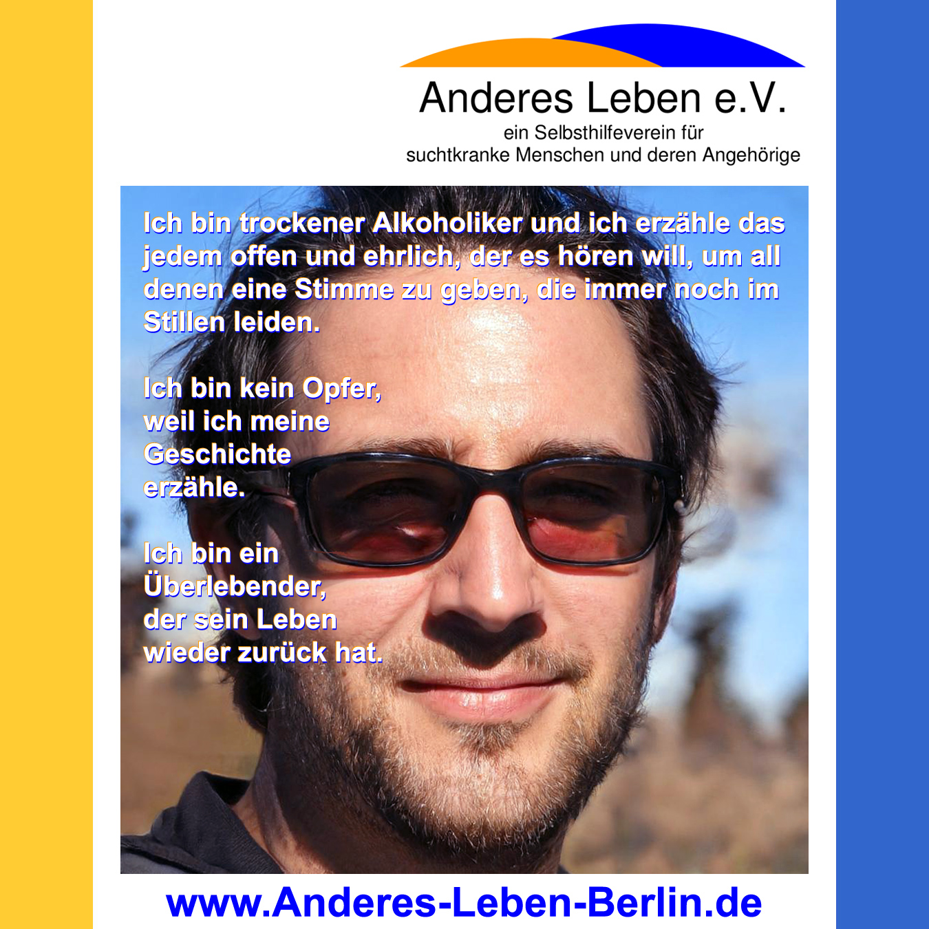 Ich bin trockener Alkoholiker und ich erzähle das jedem offen und ehrlich, der es hören will (oder auch nicht), um all denen eine Stimme zu geben, die immer noch im Stillen leiden. Ich bin kein Opfer, weil ich meine Geschichte erzähle. Ich bin ein Überlebender, der sein Leben wieder zurück hat. Es geht mir darum, denjenigen, die mit dem Alkohol aufhören wollen, zu zeigen, dass ein Leben ohne Alkohol sehr wohl lebenswert ist. Lass Dir helfen! Such Dir eine Selbsthilfegruppe für suchtkranke Menschen in Deiner Nähe und gehe da jede Woche hin, um Dir von ebenfalls Betroffenen helfen zu lassen. Hilfe zur Selbsthilfe! Oder informiere Dich in einer Beratungsstelle. Gerade in Berlin gibt es so viele Selbsthilfegruppen und unterschiedliche Hilfsangebote. Worauf wartest Du?