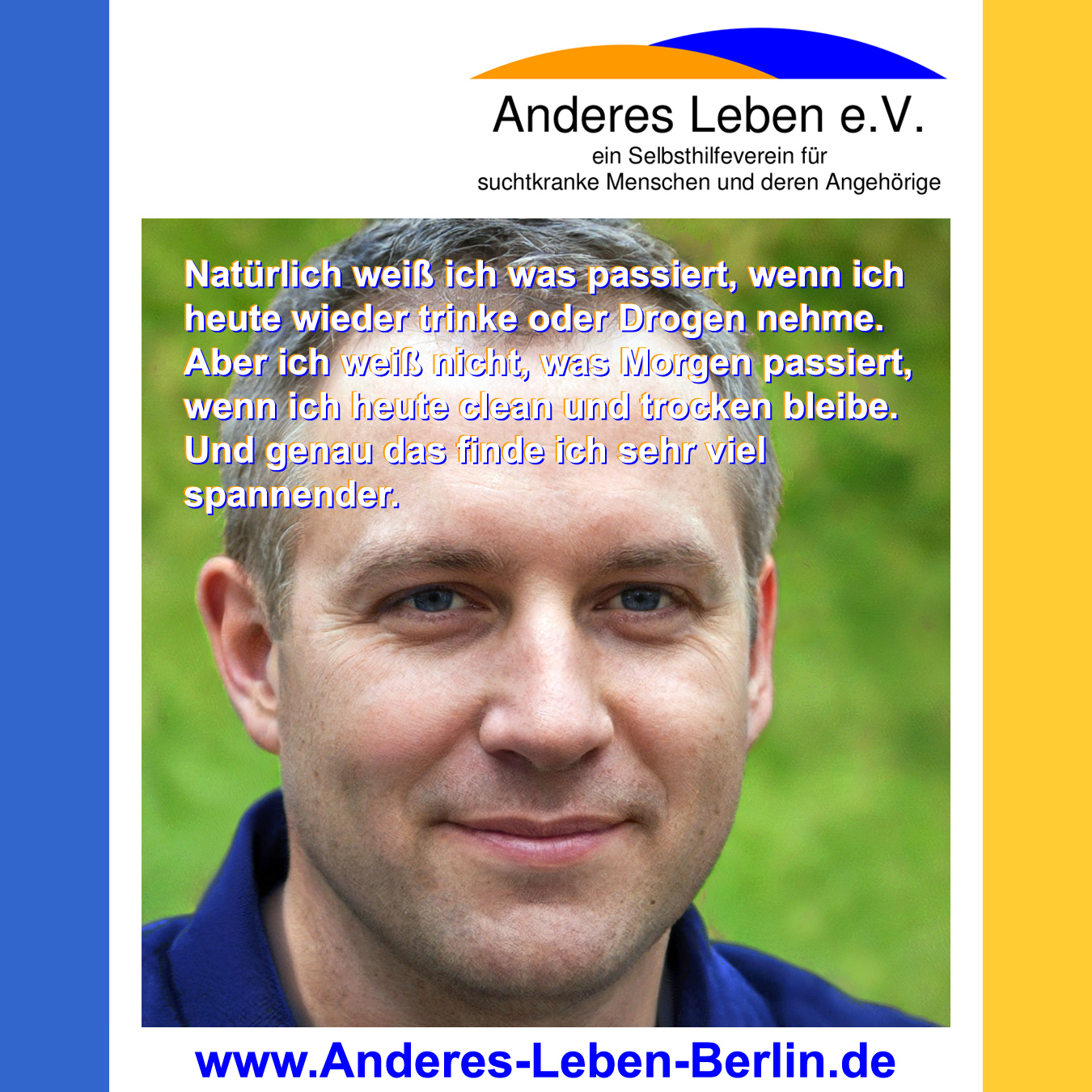 ANTI - DROGEN - TAG 2024 Zum Internationalen Tag gegen Drogenmissbrauch und unerlaubten Suchtstoffverkehr, oder auch 'Weltdrogentag', am 26. Juni 2024, stellen wir euch unser neues Video vor. Wenn sich alles dreht und immer wieder verschwimmt: Wir sind da, wenn Du Hilfe benötigst. Besuche uns in Buckow, Konradshöhe, Wedding, Oberschöneweide oder online. Sucht macht keine Sommerpause!Aber wir auch nicht! Egal, ob es regnet, stürmt und schneit, oder ob die Sonne scheint: unsere Selbsthilfegruppen sind das ganze Jahr über geöffnet. Im Sommer steigt die Suchtgefahr, da Alkohol und Drogen oft mit Freizeitaktivitäten in Verbindung gebracht werden. Grillpartys, Festivals und Strandbesuche sind nur einige Beispiele für Situationen, in denen der Konsum von Suchtmitteln verlockend sein kann. Somit ist die Versuchung groß und auch das Risiko für Rückfälle umso höher. Sucht kennt in der Sonne, im Schatten, im Wasser, am Meer, in den Ferien oder im Urlaub keine Pause! Es ist wichtig, sich bewusst mit dem eigenen Konsumverhalten auseinanderzusetzen und gegebenenfalls Hilfe anzunehmen. Wir sind da, wenn Du Hilfe benötigst. Besuche uns in Buckow, Konradshöhe, Wedding, Oberschöneweide oder online. Wir wünschen euch einen schönen, trockenen und cleanen, Sommer!Anderes Leben e.V.GESICHTER - GESCHICHTEN - GEDANKEN Folge 18