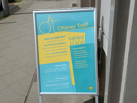 Oder um freitags vor der Gruppe Oberschöneweide (17:30 - 19:30 Uhr) von 'Anderes Leben e.V.' früher vorbeizukommen, um sich mit anderen Gruppenteilnehmern und neuen Gästen zu unterhalten.