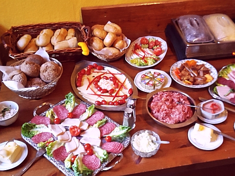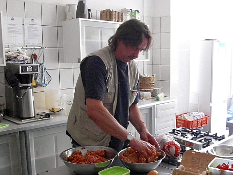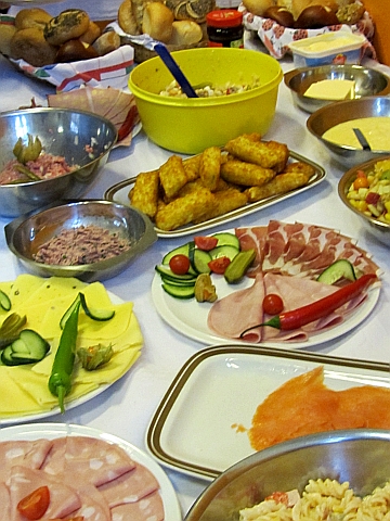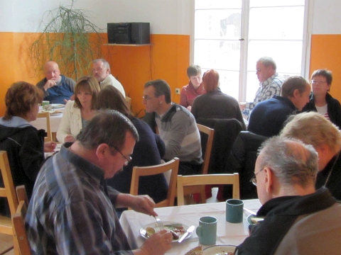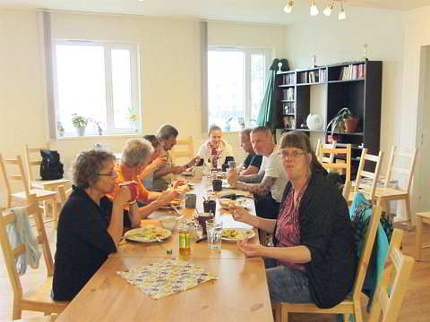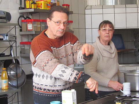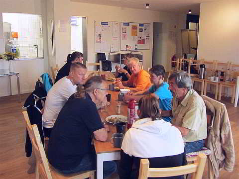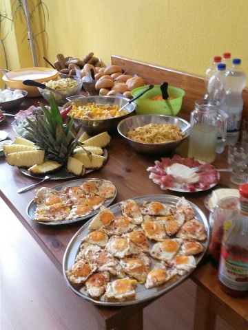 Der große Gruppenraum und die große und toll eingerichtete Küche im 'Strohhalm' waren eine gute Möglichkeit für uns der wachsenden Zahl an Gruppenteilnehmern bzw. Gästen zum Frühstück gerecht zu werden.