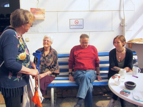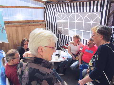 FOTOS UNSERER VERANSTALTUNGEN: Frühstücksbuffet am 06. April 2019: Das Frühstückbuffet im April fand schon zum großen Teil im Hof statt, weil es richtig schön sonnig war. ![]() Das Frühstücksbuffet ist wirklich ein ganz toller Treffpunkt für viele verschiedene Menschen. ![]() Denn es kommen nicht nur Gäste aus unsren Gruppen von 'Anderes Leben', sondern auch Gäste aus anderen Selbsthilfegruppen, oder auch nicht betroffene Besucher. ![]() So findet immer wieder ein toller Austausch an Meinungen und Blickwinkeln statt. Und es gibt immer was zu lachen. ![]() Bei den frühlingshaften Temperaturen wurde natürlich auch die Kleiderkammer genutzt. ![]() Deshalb ist die Hälfte der Gäste nicht auf Fotos zu sehen. :-)