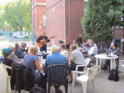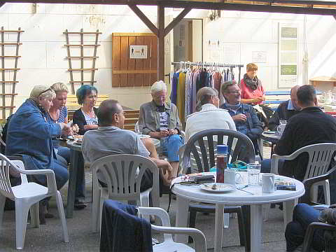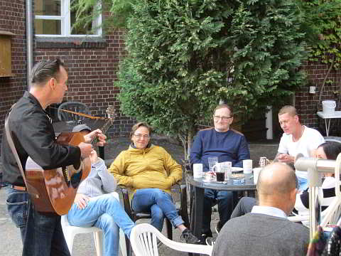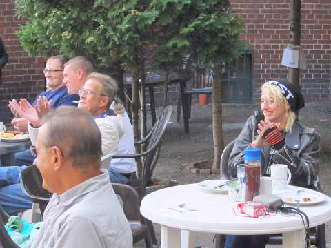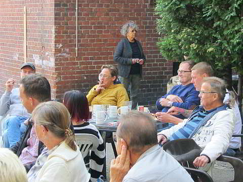 FOTOS UNSERER VERANSTALTUNGEN: Grillen am 19. September 2020: Zum letzten Mal Grillen im Hof vom 'Treffpunkt Strohhalm' Da unser Frühstücksbuffet im September aufgrund der aktuellen Hygiene-Richtlinien immer noch nicht statt finden konnte, hatten wir uns entschloßen nochmal in diesem Jahr zu grillen. Dabei ist uns auch aufgefallen, dass es nicht nur das letzte Grillen in diesem Jahr sein wird, sondern auch zum letzten Mal im 'Treffpunkt Strohhalm' in Oberschöneweide. Ab 2021 wird der Treffpunkt in den neuen Räumen in Niederschöneweide sein. (Wir werden euch darüber noch informieren). Mehr als 25 Leute waren zum Grillen gekommen. Es gab wieder sehr viel Leckeres vom Grill und tolle Nudel- und Kartoffelsalate. Rudi hatte wieder mit seinem Team alles lecker zubereitet. ![]() ![]() Wie man auf den Fotos sehen kann, war das Wetter auch prima! Es war ein ganz bunter Mix von Gästen. Neben den vielen Mitgliedern und den üblichen Gästen, folgten auch einige Weggefährten unseres Vereins unserer Einladung. ![]() ![]() Als musikalische Einlage sorgte wieder Micha mit seiner Gitarre für vergnügliche Stimmung. Er spielte verschiedene deutsche und englische Rockabilly-Songs, die er zum Teil auch mit sehr lustigen selbstgeschrieben Texten sang. ![]() ![]() Zum Ende nutzte Helmut die Gelegenheit, um zahlreiche Themen anzusprechen, die den Verein betreffen. Die Planung einiger Veranstaltungen war ebenfalls Thema (mehr dazu demnächst unter 'Veranstaltungen & Termine'). ![]() ![]() Wir bedanken uns bei allen Helfern und Gästen für diesen tollen Tag. Bis zum nächsten Mal! zurück zur FOTOGALERIE Die oben gezeigten Fotos wurden uns mit freundlicher Genehmigung von Oliver zur Verfügung gestellt. Vielen Dank! Bildbearbeitung: Oliver © 2011-2020 Anderes Leben e.V. |
